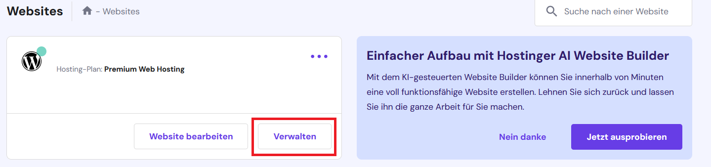 1. Melden Sie sich bei Ihrem Hostinger-Konto an