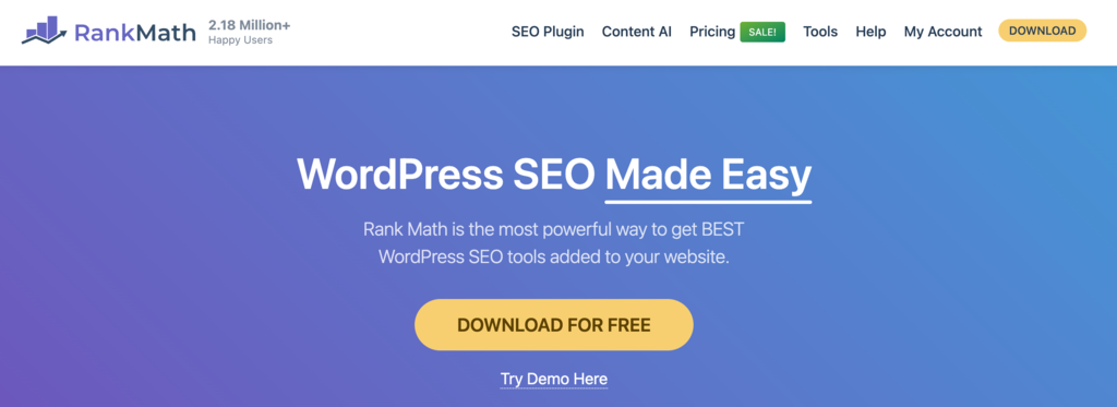 Rank Math ist ein Plugin zur Suchmaschinenoptimierung (SEO), das KI verwendet, um Ihnen zu helfen, relevante Schlüsselwörter zu identifizieren und Ihre Beiträge zu optimieren. Es bietet Ihnen auch eine fortgeschrittene Suchmaschinenoptimierungsanalyse der gesamten Website und hebt alle Probleme mit dem Inhalt hervor.