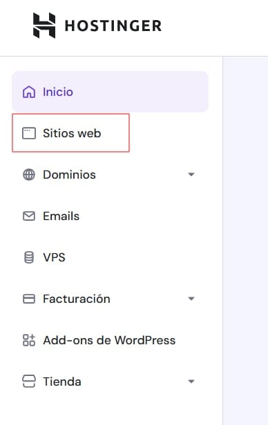 Navega hasta la sección Sitios web de tu hPanel y luego, haz clic en Añadir sitio web: