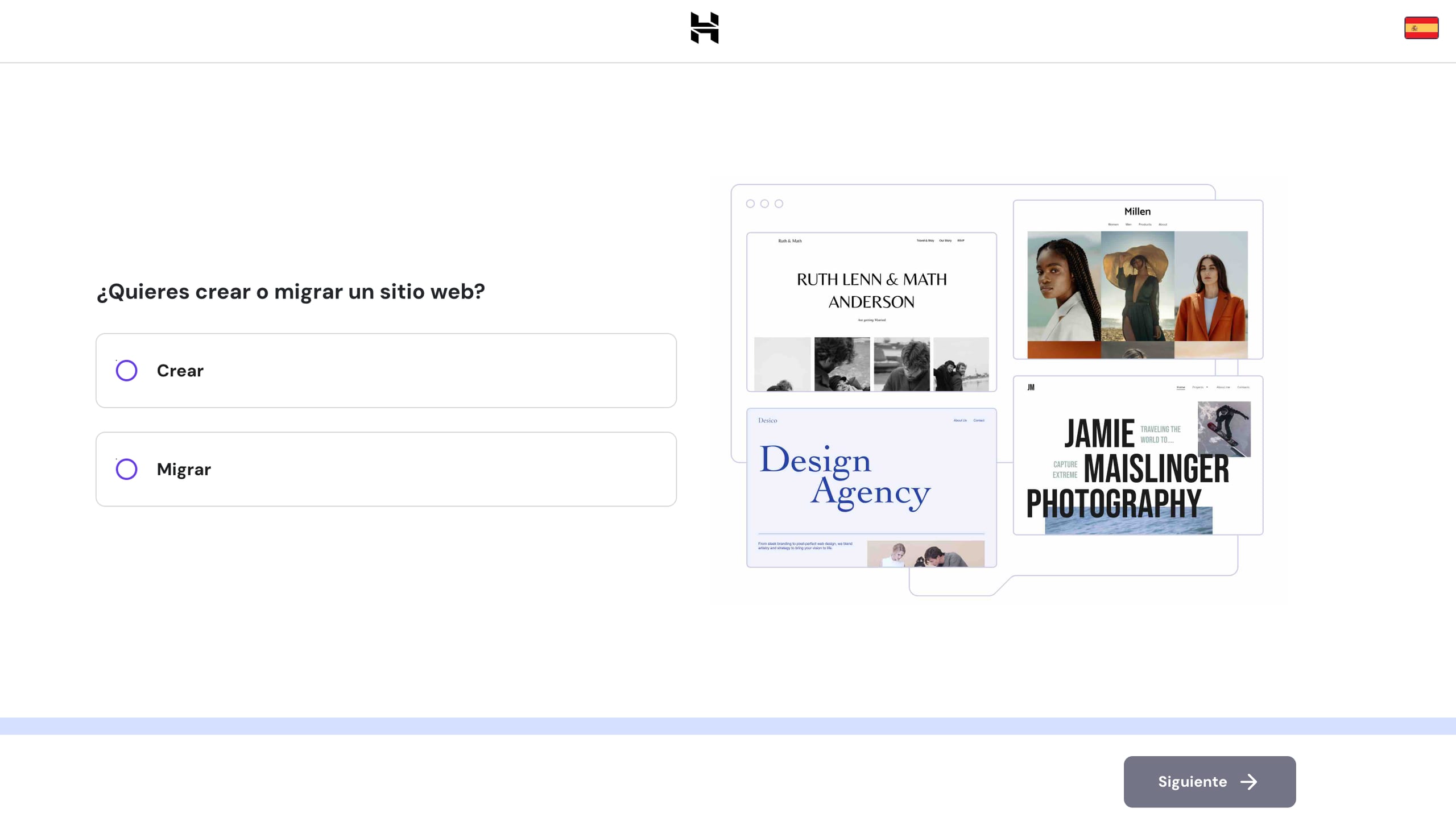 Selecciona para crear un nuevo sitio web o migrar (cargar o transferir) uno existente.