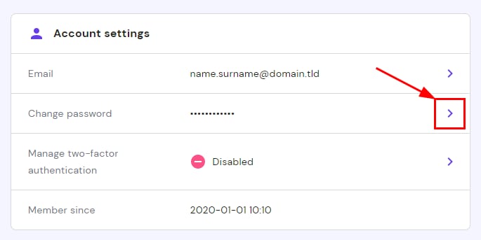 A continuación, desplázate hasta la sección Configuración de la cuenta y haz clic en la flecha ❯ situada junto a la contraseña:
