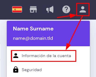 Una vez que hayas iniciado sesión, haz clic en tu icono de perfil y elige la opción Información de la cuenta: