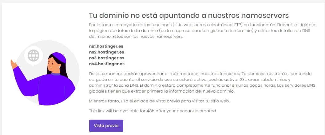Si acabas de crear una nueva cuenta de hosting e hiciste cambios recientemente en los nameservers o zona DNS de tu dominio, es posible que encuentres el siguiente mensaje: