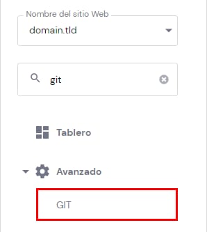 Si deseas desplegar un repositorio git, puedes hacerlo desde Hosting → Administrar, busca Git en la barra lateral izquierda, y da clic: