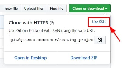 Para utilizar un repositorio privado, selecciona la opción Use SSH: