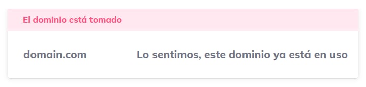 Si el nombre de dominio que elegiste es corto o usa términos comunes, es probable que otra persona ya lo haya tomado, por lo tanto, no estará disponible para la compra: