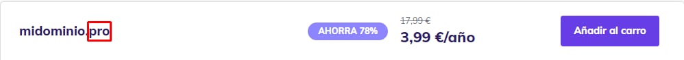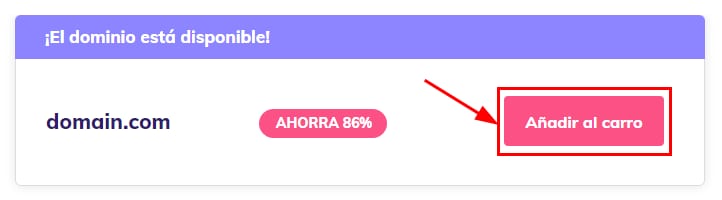 A continuación, selecciona Agregar al carrito para continuar con el registro del dominio.