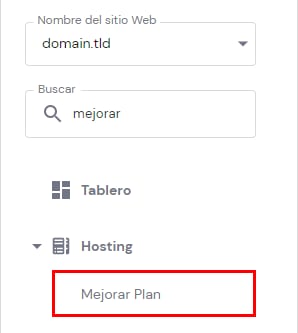Puedes hacerlo directamente desde la sección Sitios web → Panel, busca Mejorar plan en la barra lateral izquierda y da clic: