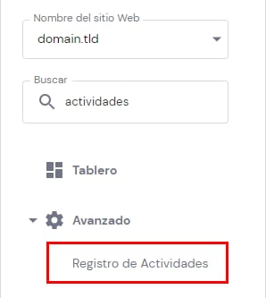 Puedes encontrarlo abriendo Hosting → Administrar, buscando Registro de actividades en la barra lateral izquierda y dando clic: