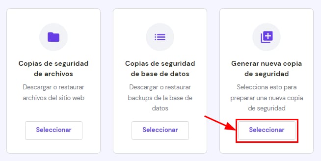 Una vez allí, haz clic en Seleccionar cerca de la sección Generar nueva copia de seguridad: