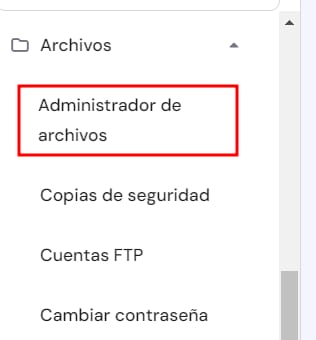 Si ya has creado un sitio web, simplemente puedes cargar archivos del sitio web utilizando el Administrador de archivos. Ve a Sitios web → Administrar, busca Administrador de archivos en la barra lateral izquierda y da clic: