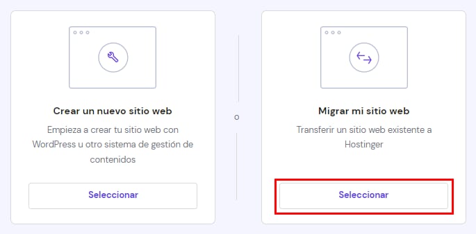 Elige Transferir sitio web en la siguiente pantalla, completa todos los detalles de migración y ¡nosotros nos encargaremos del resto!