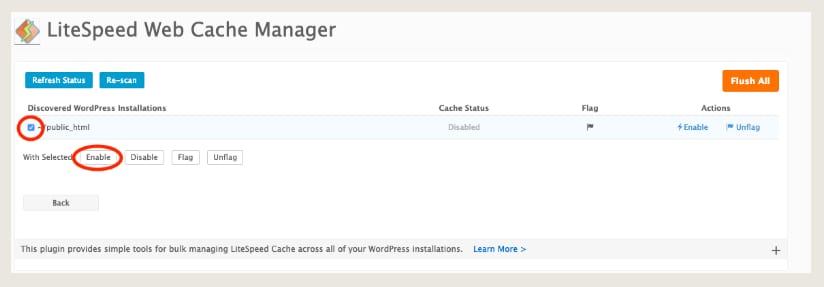 Todos nuestros servidores de alojamiento de cPanel se basan en el servidor web LiteSpeed. Esto significa que los usuarios de WordPress pueden habilitar fácilmente el complemento de caché LiteSpeed. LiteSpeed Web Cache Manager está integrado dentro de cPanel y ayuda a: