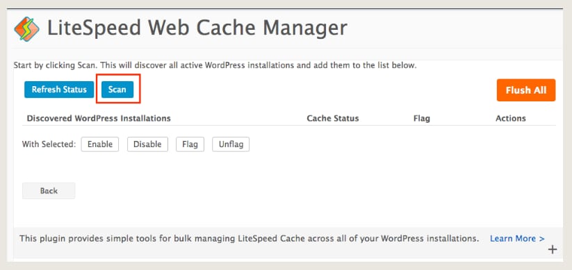 Comianza el proceso haciendo clic en el botón Escanear, esto descubrirá todas las instalaciones activas de WordPress: