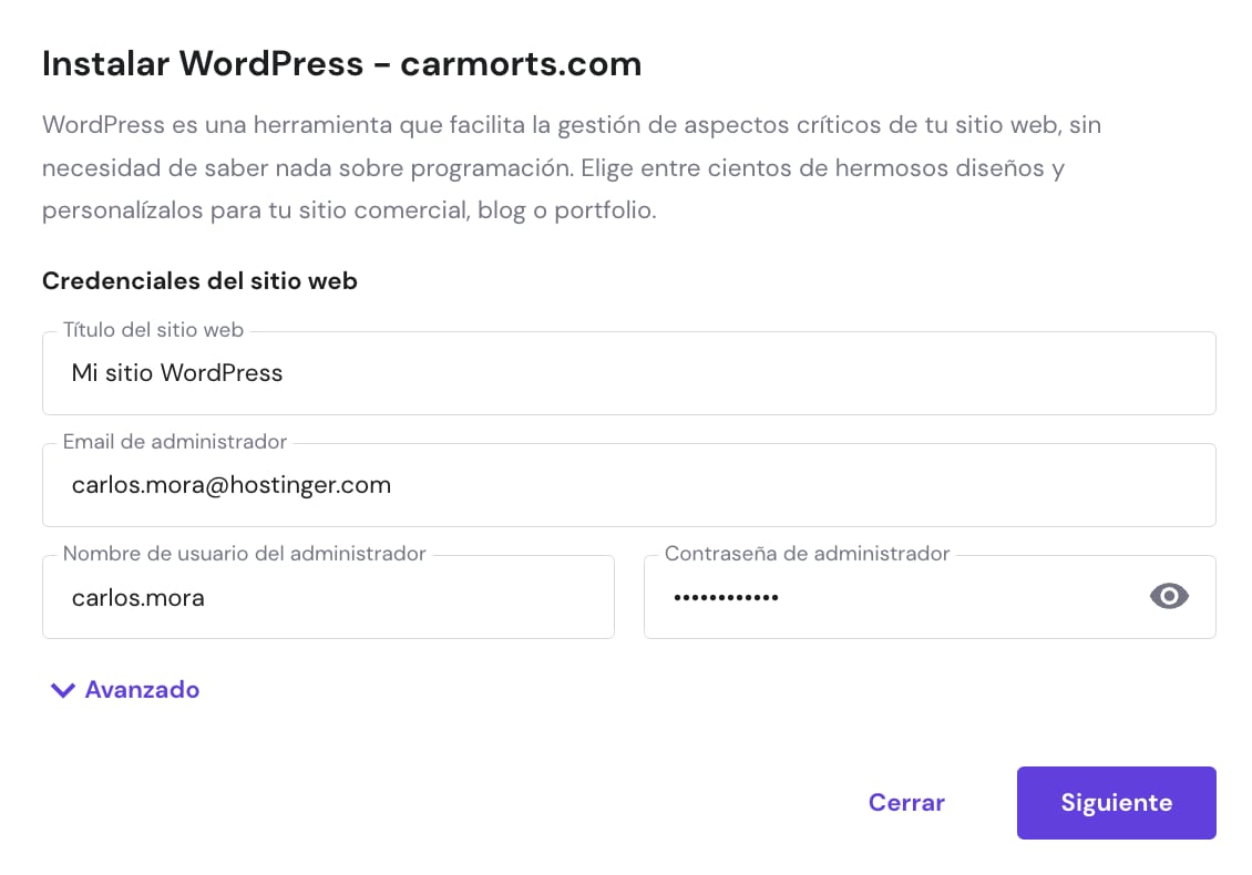 Configurar un sitio web de WordPress usando el instalador automático de Hostinger