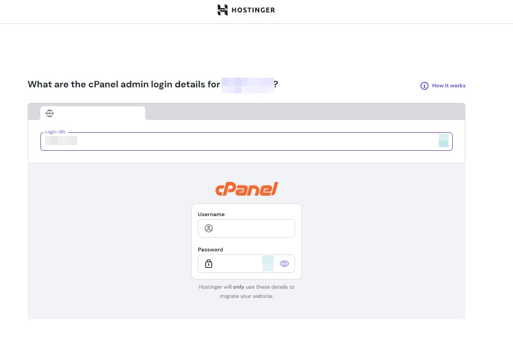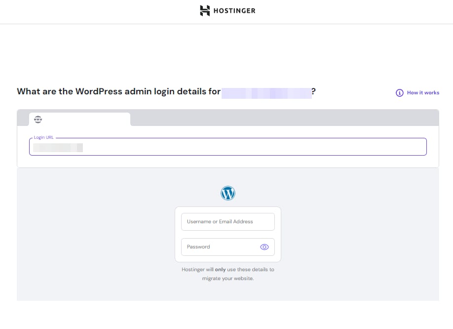 Si tu sitio web está online y tiene las credenciales de inicio de sesión, solo selecciona la opción “Usar detalles de inicio de sesión” para migrar tu sitio de manera segura y sencilla.
