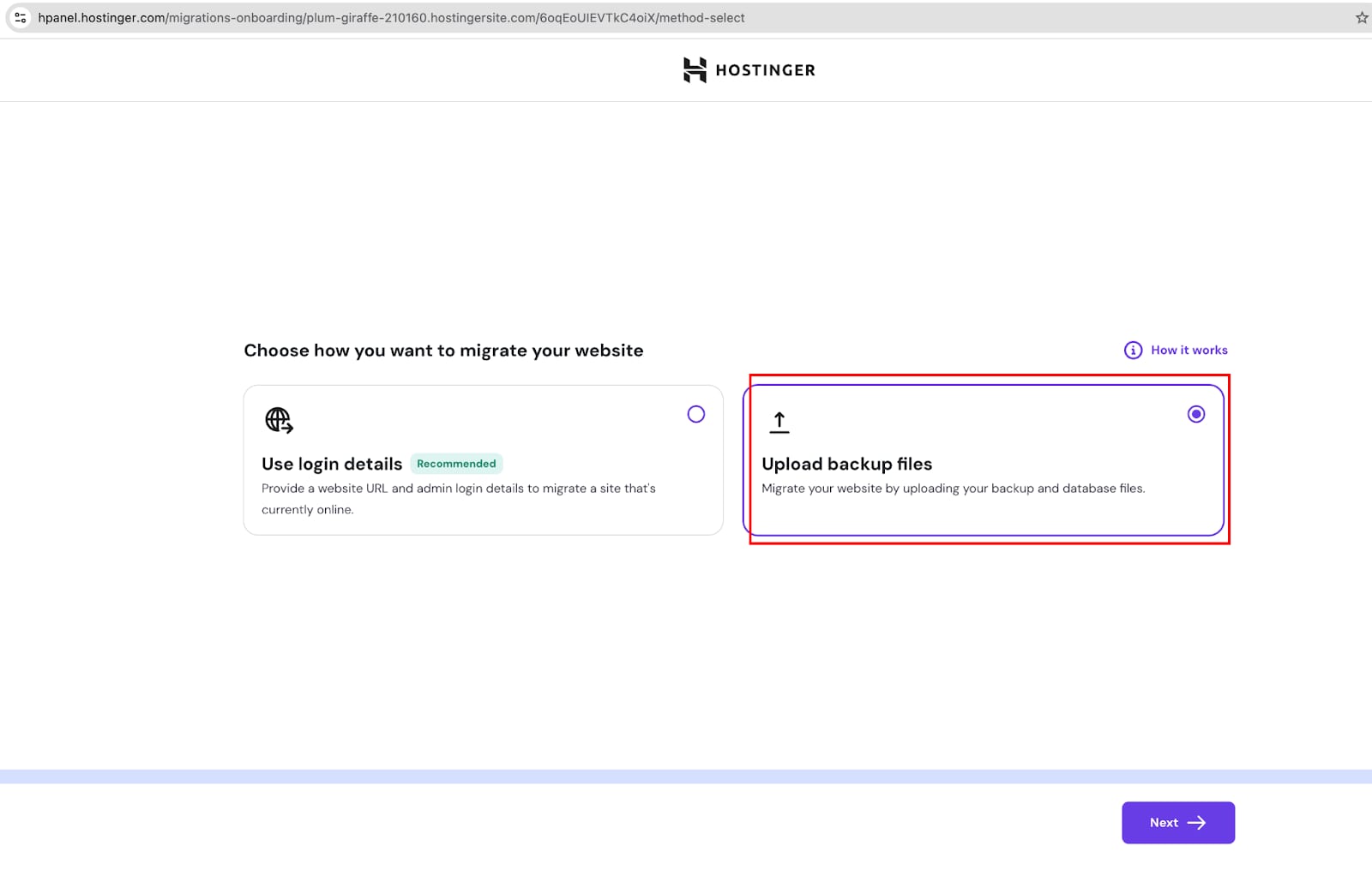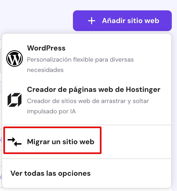 Si tu sitio web cumple estas condiciones, puedes continuar con el siguiente paso. De no ser así, si ya está alojado en Hostinger, consulta más abajo la información sobre las migraciones internas.
