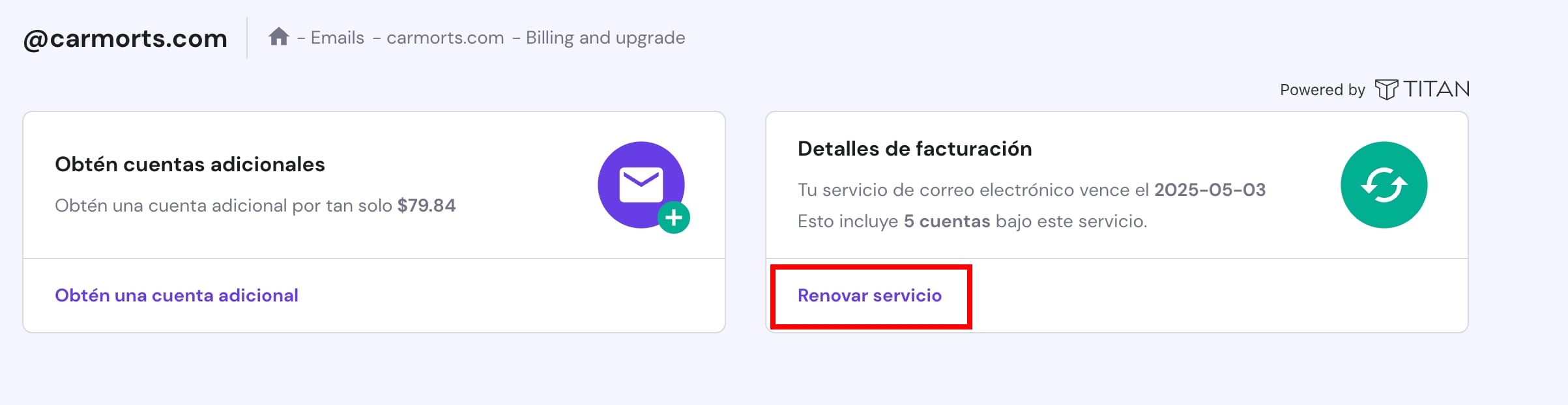 Eso es todo, ahora ya sabes cómo renovar tus planes de Titan Email. 😊