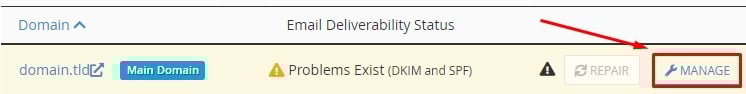 Haz clic en el botón Administrar en el dominio para el que deseas habilitar el registro SPF: