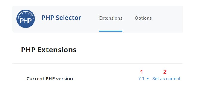 En la página recién abierta, puedes seleccionar la versión de PHP que deseas usar y hacer clic en Establecer como actual: