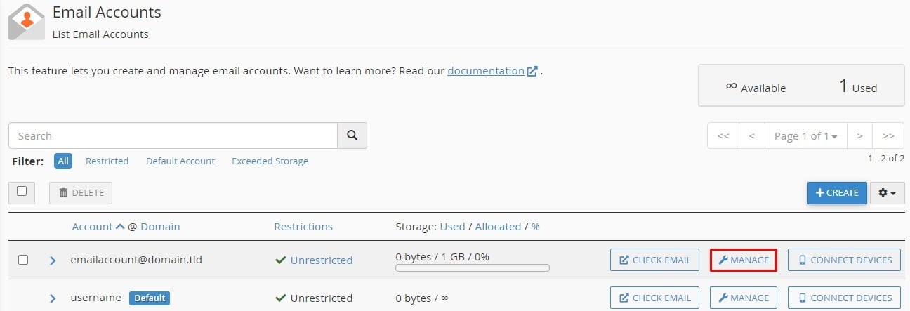 Puedes cambiar fácilmente tu contraseña de correo electrónico abriendo tu cuenta de cPanel → sección Cuentas de correo electrónico: