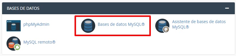 Puedes cambiar la contraseña de una base de datos abriendo tu cuenta cPanel y seleccionando la sección Bases de datos MySQL®: