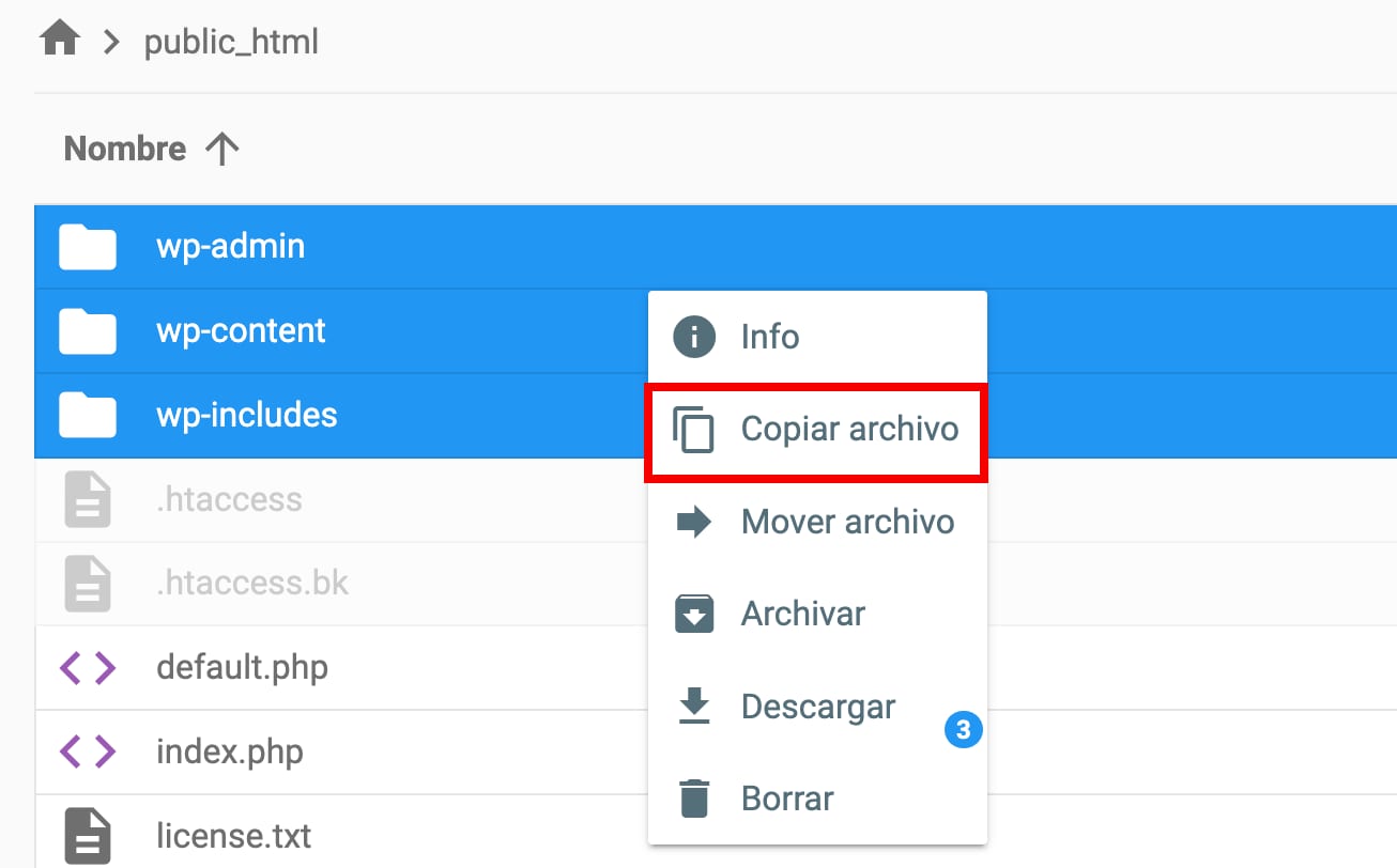 Es posible copiar archivos y carpetas usando el administrador de archivos: