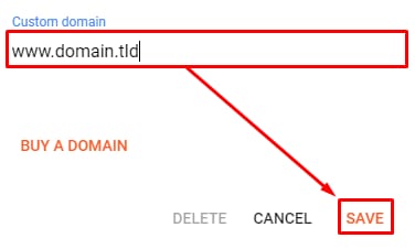 Introduzca su nombre de dominio con www delante y haga clic en Guardar (Save):