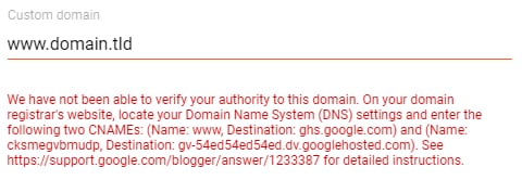 Una vez hecho esto, haz clic de nuevo en Guardar (Save) y tu dominio se añadirá a Blogger: