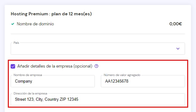 Después de ingresar un número de IVA válido para transacciones transfronterizas dentro de la UE, se deducirá el IVA de tu factura y podrás continuar con el pago. 😊