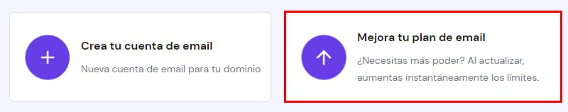 Una vez ahí, selecciona Mejora tu plan de email: