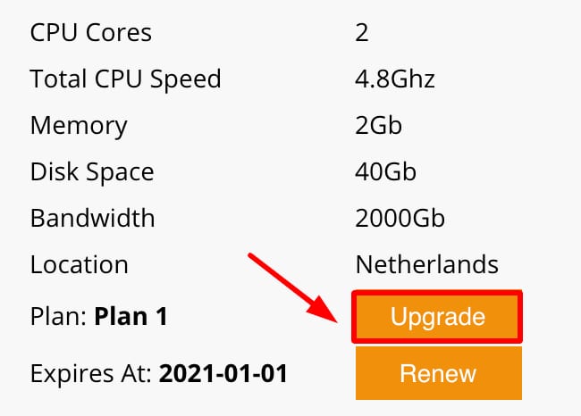Para cambiar el plan, abre la página Servidores, elige el servidor que deseas actualizar.