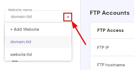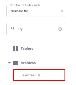 Para cambiar la contraseña FTP ve a Sitios web → Administrar, busca Cuentas FTP en la barra lateral izquierda y da clic: