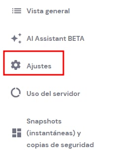 Puedes activar el modo de emergencia con unos pocos clics a través de hPanel. Simplemente navega a la sección VPS y elige el servidor al que deseas aplicar los cambios. Luego abre la página de Configuración: