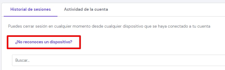 Si algunos inicios de sesión anteriores no te parecen familiares, o si sospechas que alguien ha obtenido acceso a tu cuenta, siempre puedes desconectar todos los dispositivos y cambiar la contraseña en un par de clics. Solo elige la opción ¿No reconoces un dispositivo?: