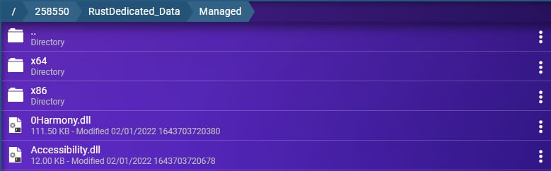 Una vez que haya descargado este archivo, deberá cargarlo en 258550 > RustDedicated_Data > Managed Folder :
