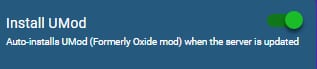 Antes de empezar, es necesario asegurarse de que has instalado Umod en tu servidor de Rust. Esto se puede hacer marcando la casilla de verificación en configuración > rust página en tu Panel de Juego: