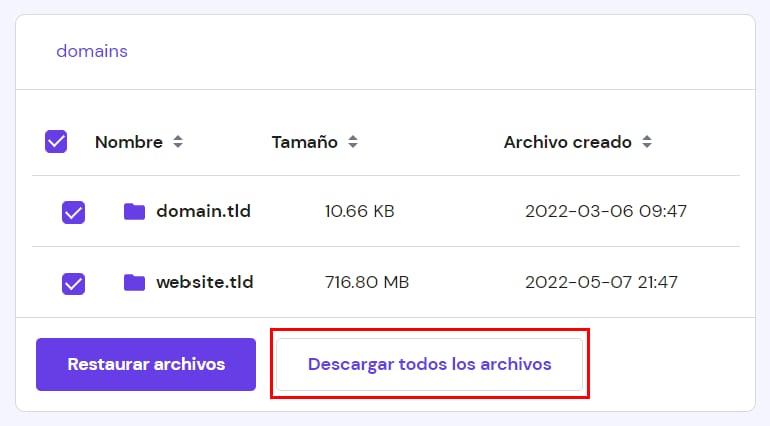Descargar copias de seguridad de tu sitio web en Hostinger