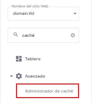 Para activar esta función, simplemente ve a Hosting → Administrar, busca Administrador de Caché en la barra lateral izquierda y haz clic:
