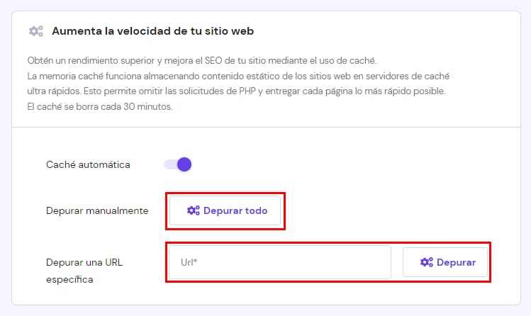 La buena noticia es que el hPanel integra un Administrador de Caché que es compatible con todos los frameworks (HTML, WordPress, Laravel, etc.) y elimina la necesidad de administrar la caché en una plataforma diferente.