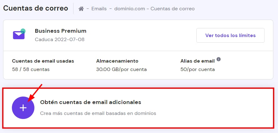 El costo del buzón adicional está determinado por la fecha de vencimiento de tu plan de email, ya que todos tus buzones de email deben tener la misma fecha de vencimiento.