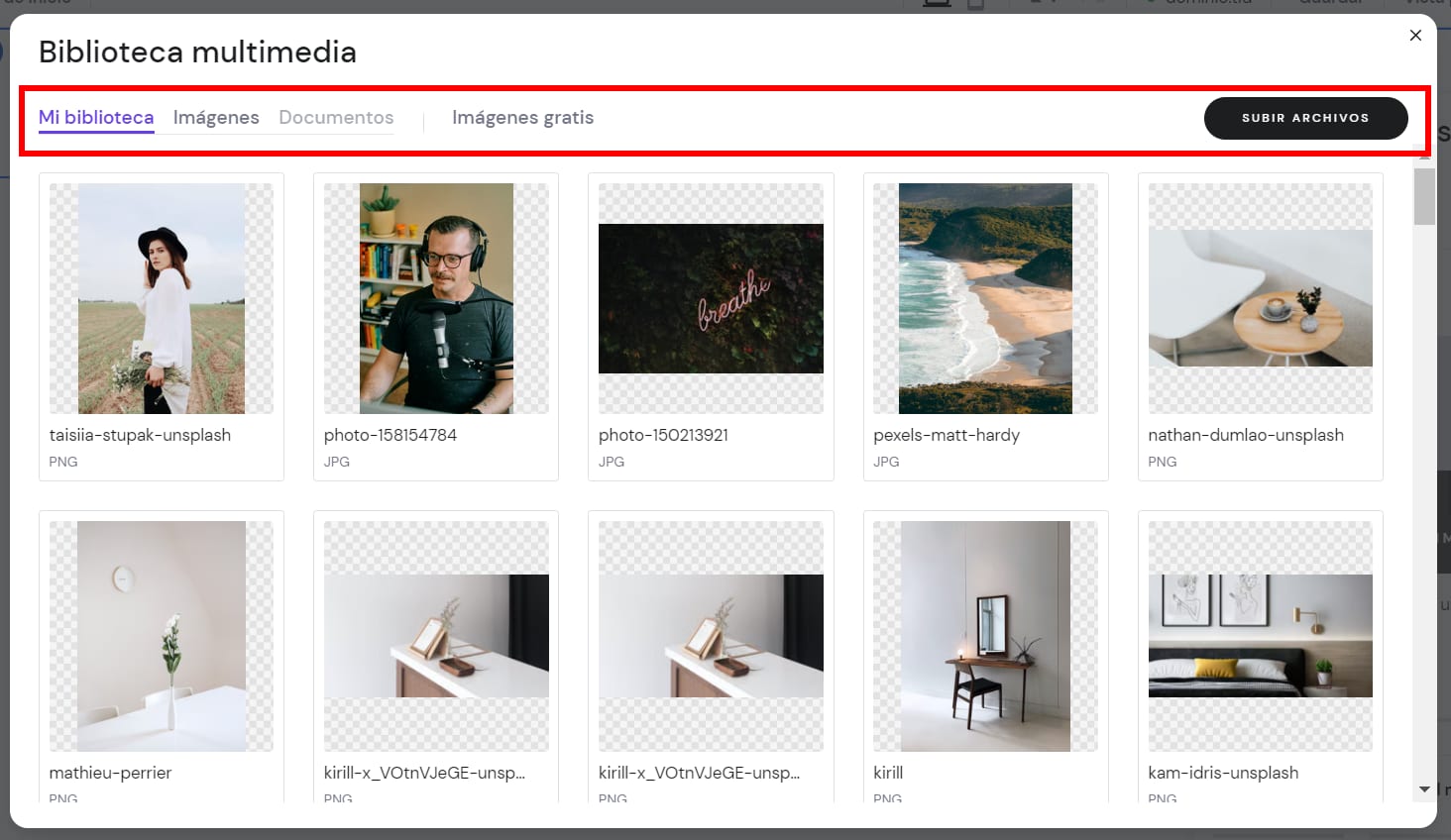 3. Puedes seleccionar una imagen de tu biblioteca multimedia, buscar imágenes gratuitas o cargar las tuyas propias: