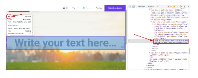Por lo tanto, si estableces el Título 1 como estilo de un elemento de texto, el texto tendrá automáticamente una etiqueta <h1> en el código de tu sitio web: