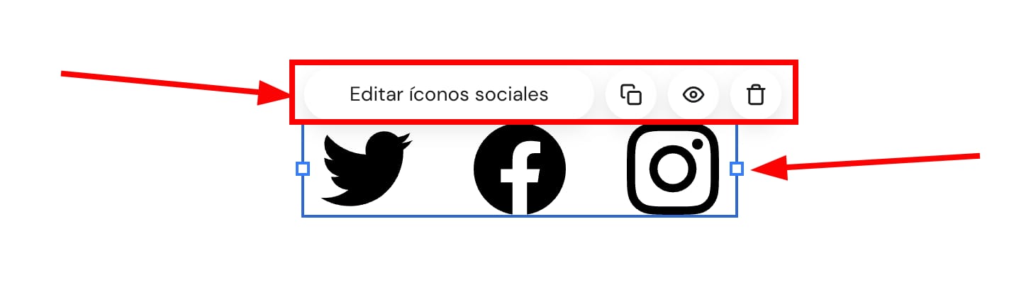Haz click en el elemento para ver más opciones: editar, duplicar, ocultar, eliminar o cambiar tamaño:
