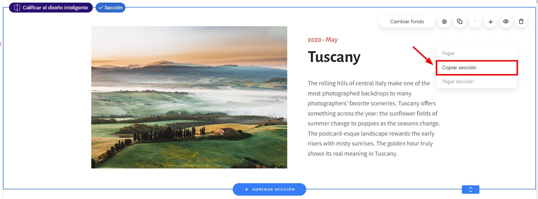 Puedes copiar fácilmente una sección y pegarla en la misma u otra página de tu web.