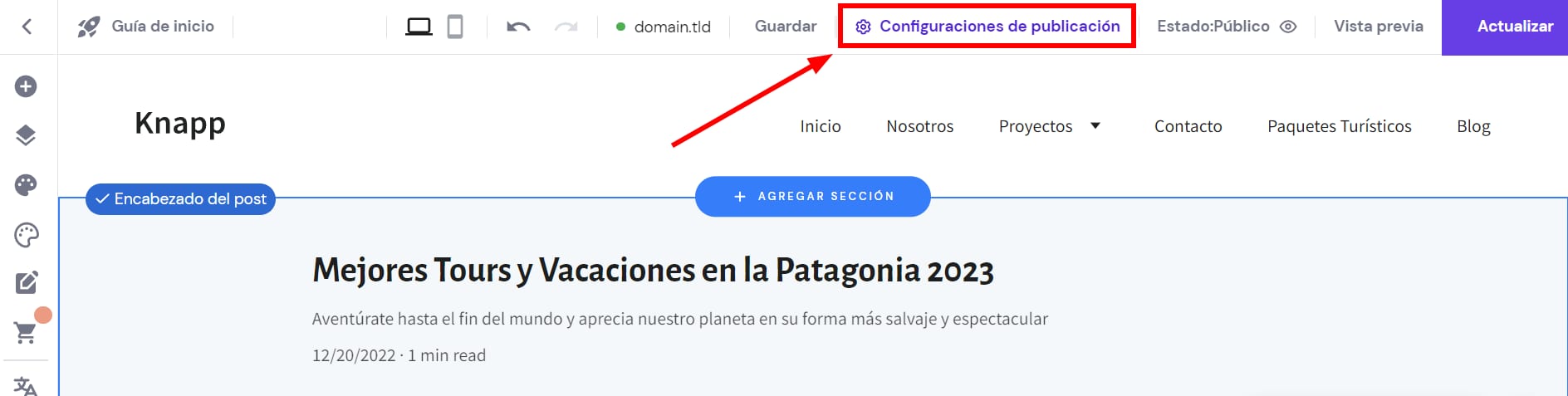 Aprende a administrar la configuración de tu blog usando el Creador de sitios web de Hostinger