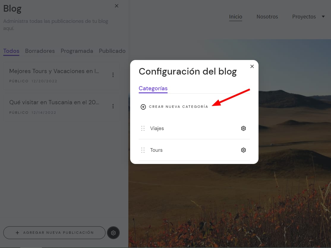Creación de categorías de publicaciones del blog