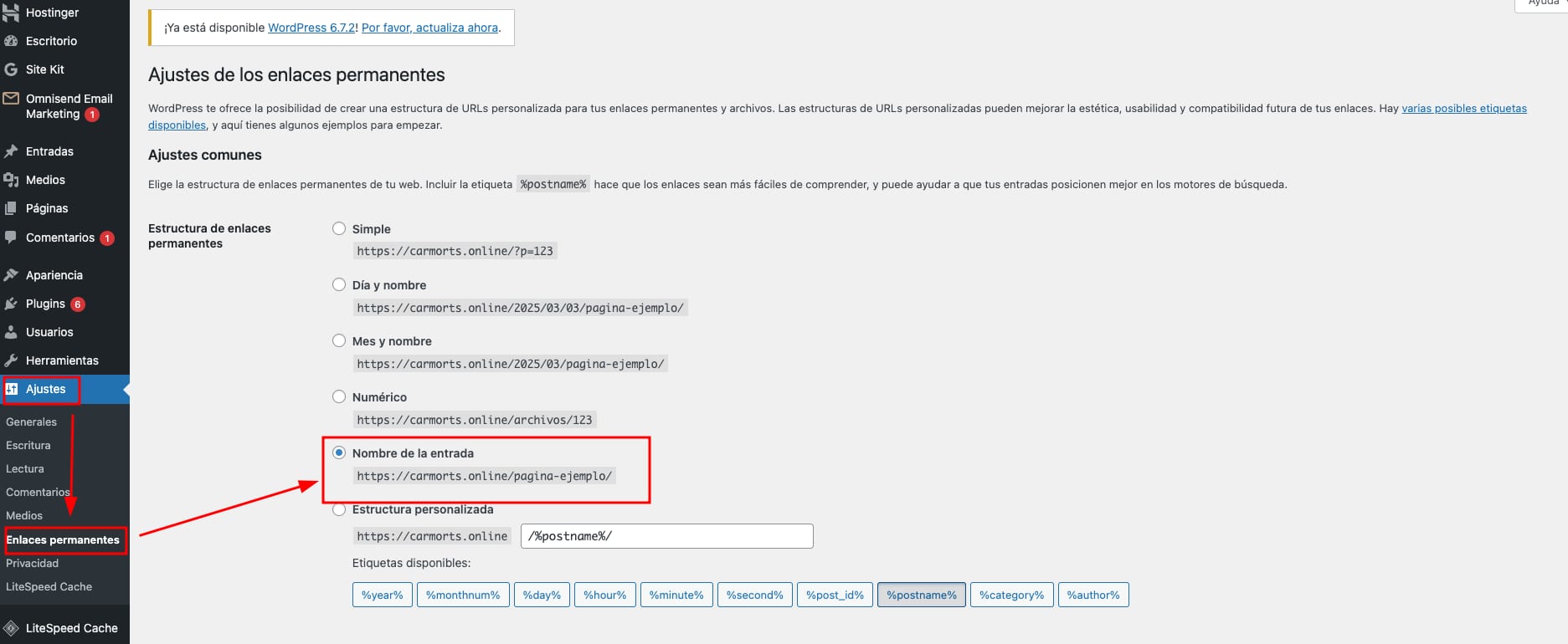 Restablece la estructura de enlaces permanentes de tu sitio web WordPress al nombre de la publicación como en el paso 1 de este tutorial: