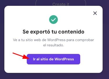 Una vez completada la exportación, haz clic en Ir al sitio de WordPress: