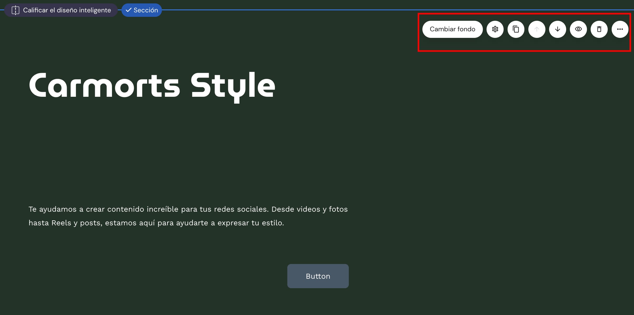 Todas las secciones del sitio web, ya sea un encabezado, un pie de página o uno normal, también tienen su propia configuración. Haz clic en una sección para revelar su menú de configuración: